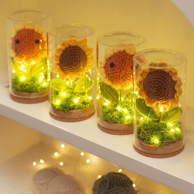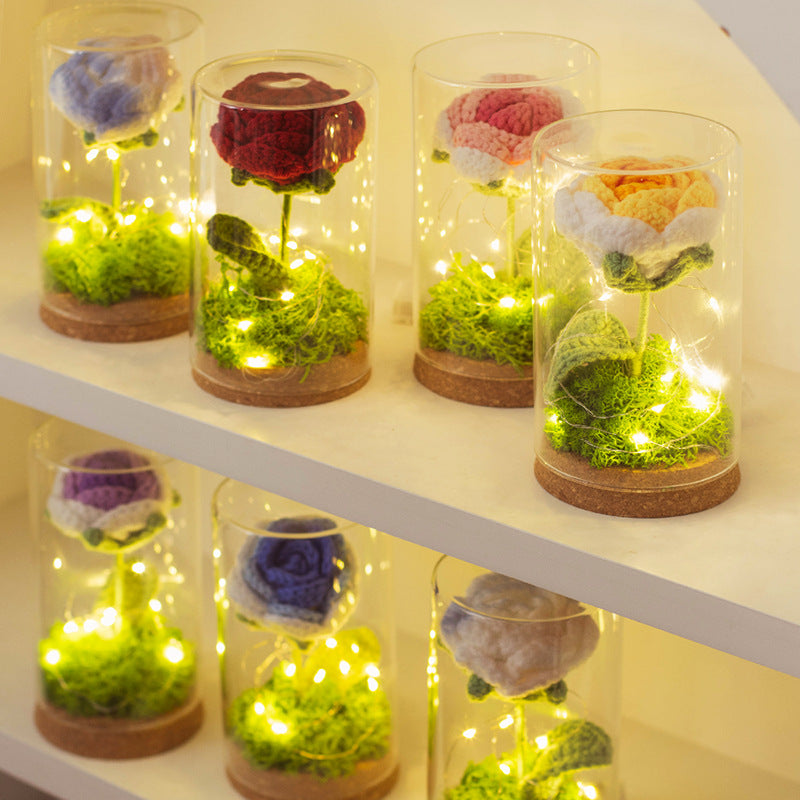 Crocheted Tulip Glass Lampshade Tabletop Night Light Ornament