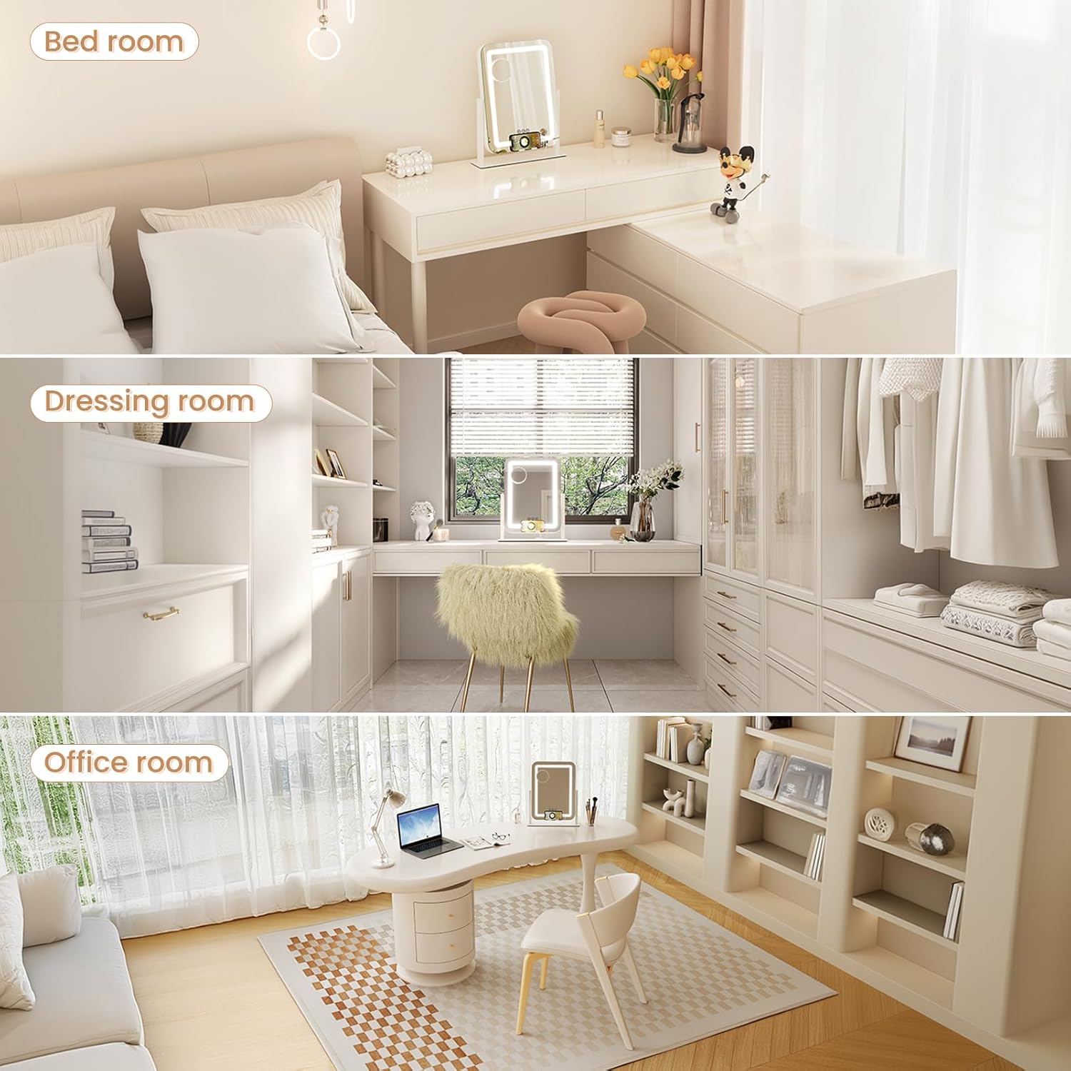 Smart Touch Control LED Lighted Makeup Mirror with 12V 2A USB Charging Port