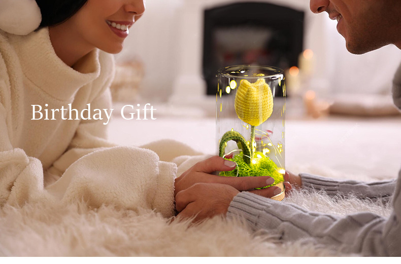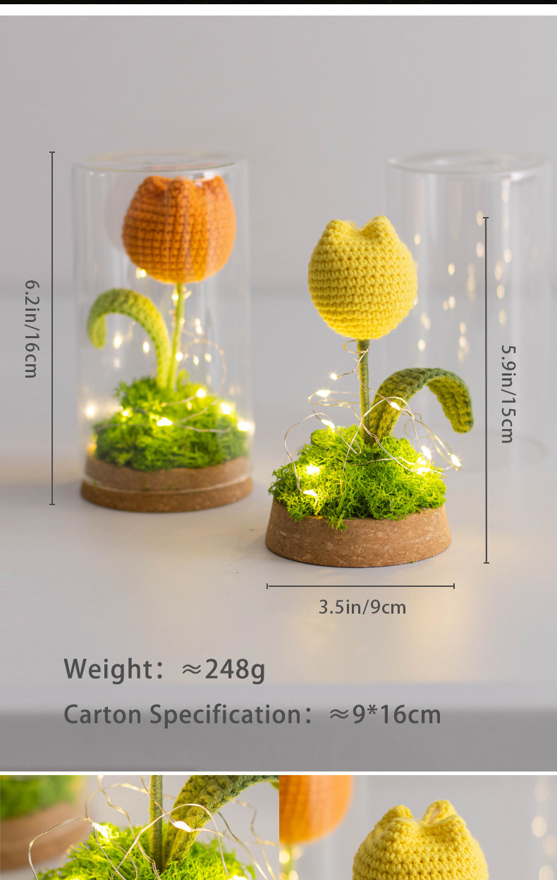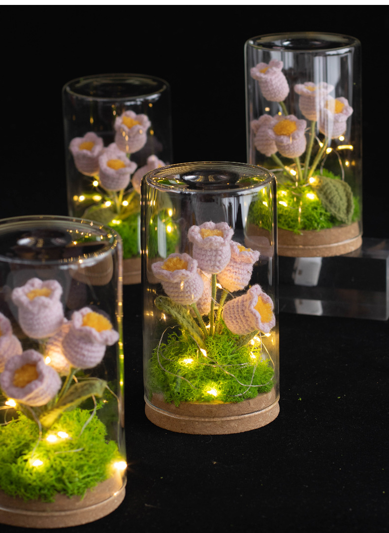 Crocheted Tulip Glass Lampshade Tabletop Night Light Ornament